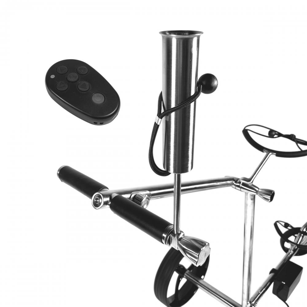 Der Galaxy Edelstahl Golftrolley mit Fernbedienung vereint elegante Optik mit moderner Technik.