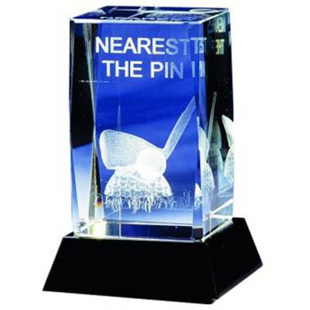 Im Inneren der Trophäe sind ein Golfball, ein Eisen sowie der Schriftzug "Nearest The Pin" eingraviert, die in der Trophäe zu schweben scheinen. Der solide schwarze Sockel kann graviert werden, so können Sie bei Ihrem Turnier z.B. den Namen des Siegers oder das datum des Wettbewerbs auf den Sockel gravieren lassen.