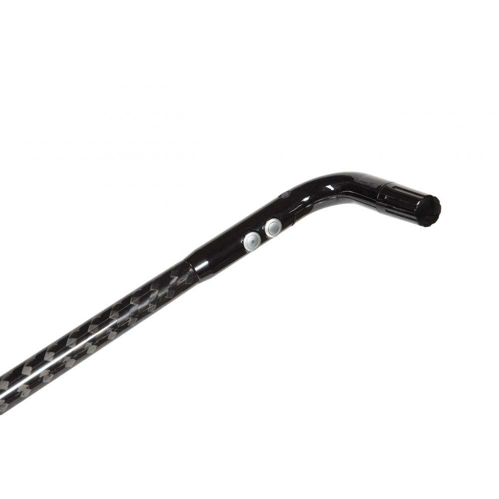 Bei Carboncaddys erfolgt die Gravur nicht an der Deichsel, sondern es wird die Metallplatte an der unteren Bagauflage mit der Gravur versehen. Die Zeichenzahl ist aufgrund der begrenzten Fläche auf 20 Zeichen beschränkt.