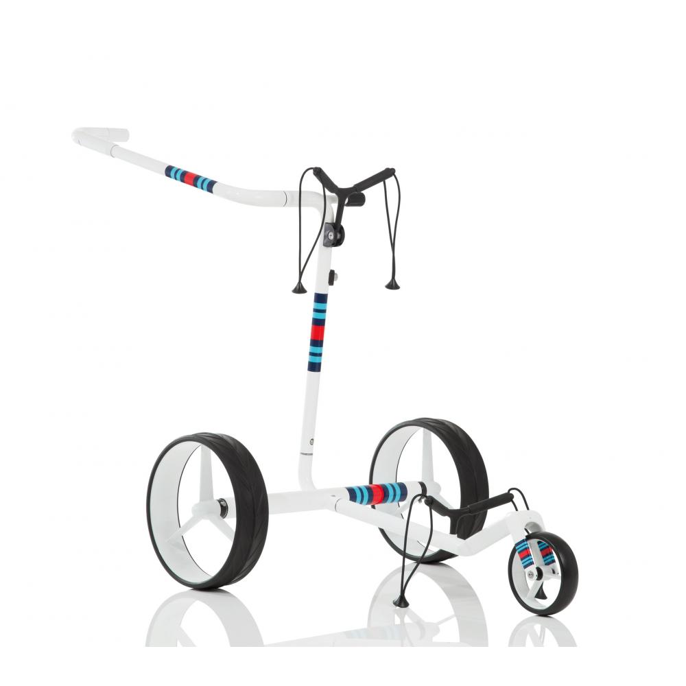 Mit diesem Sportwagen kommt die Leidenschaft von Le Mans auf die Golfrunde! Der JuCad Racing, gefertigt aus einem Vollcarbonrahmen, bringt die Dynamik und Technik des Rennsports mit sich. Die kultige Lackierung im Rennsport-Design zieht den Golfer magisch in seinen Bann, wobei das unverwechselbare JuCad Design durch die klare Linienführung und die eleganten und zugleich stabilen Leichtlaufräder erhalten bleibt. Diese Modellreihe des JuCad Carbon Travel ist weltweit limitiert und jeder Caddy wird mit Ihrer ein- oder zweistelligen Wunschnmmer geliefert. Mit diesem Wagen ist echtes Rennsport-Feeling auf dem Golfplatz garantiert, erleben Sie mit dem JuCad Racing maximalen Fahrspaß bei bewährter JuCad Technik!