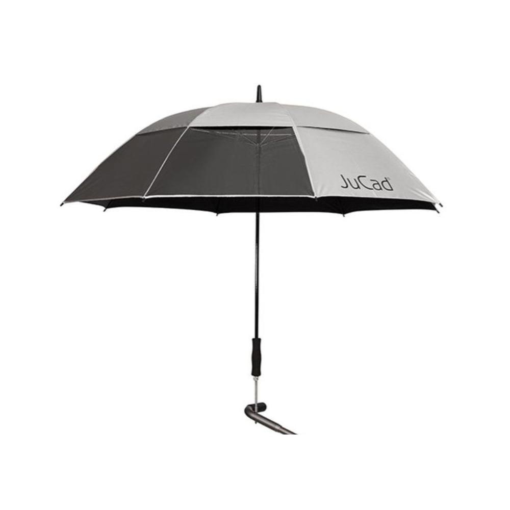 Der JuCad Golfschirm in quadratischer Form und mit Windproof Doppel-Layer bietet Ihnen extra Windschutz auf der Runde. Vollen Durchblick haben Sie dank doppeltem Sichtfenster über zwei der vorderen Schirmsegmente. Der Schirm ist zudem mit einem 99% UV-Schutz ausgerüstet (außer Sichtfenster). Inkl. Titanstift zur Befestigung  an der Schirmhalterung der JuCad Trolleys.