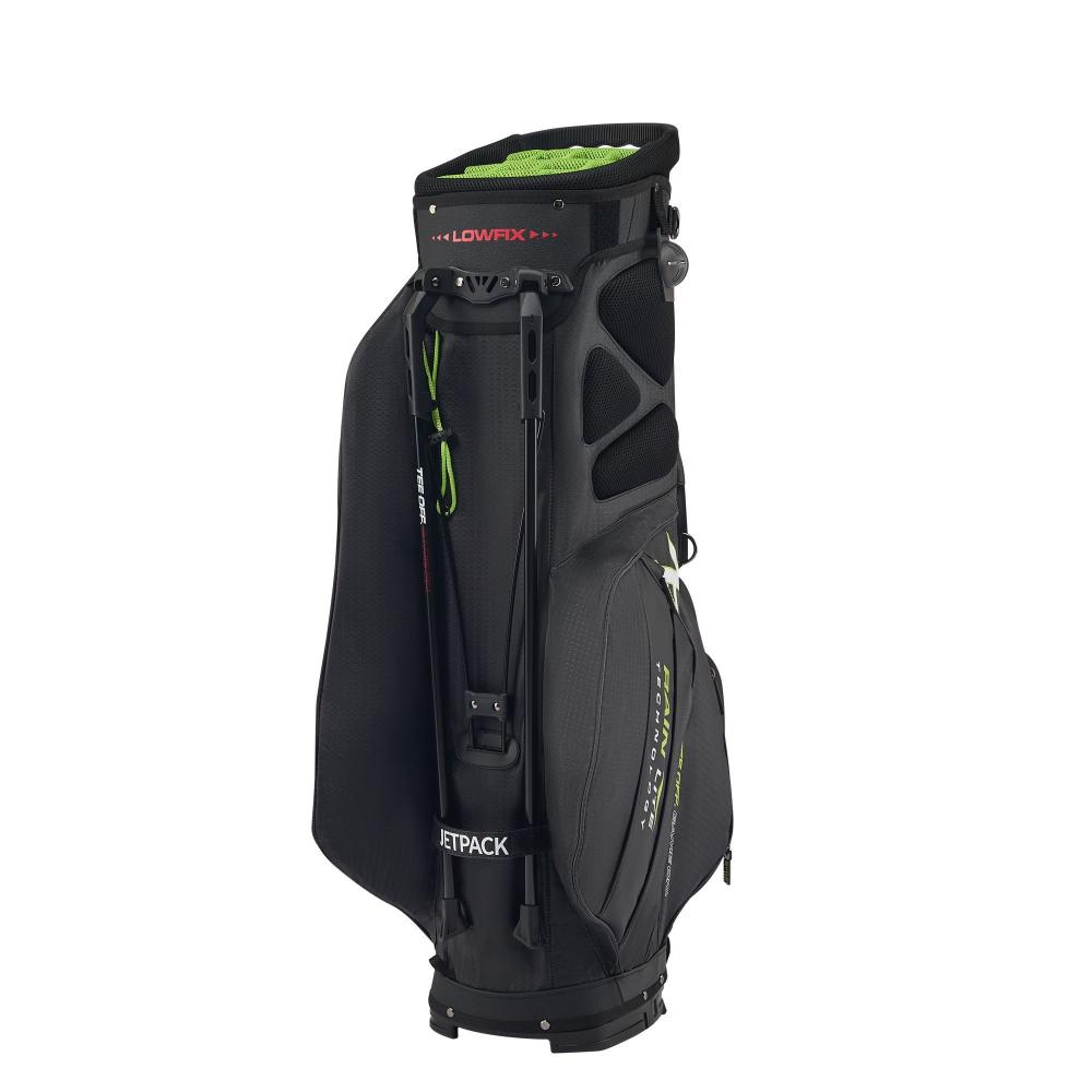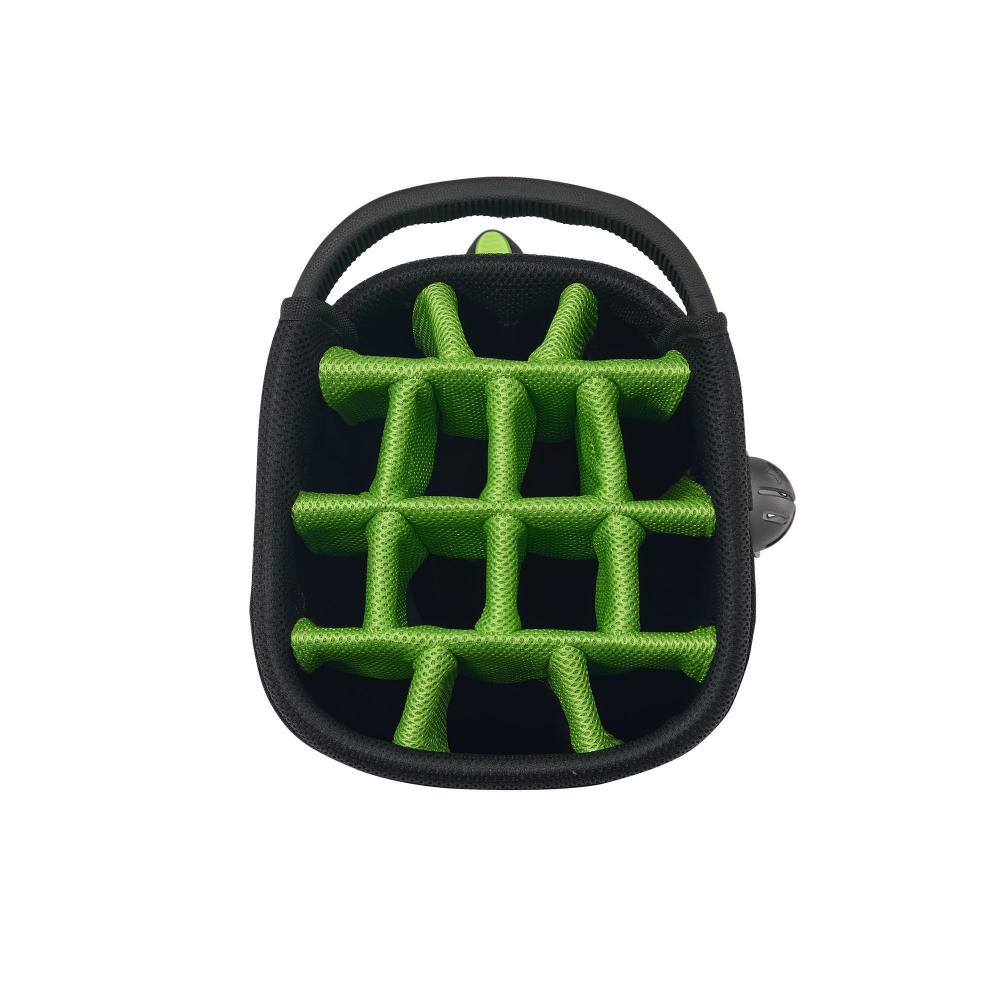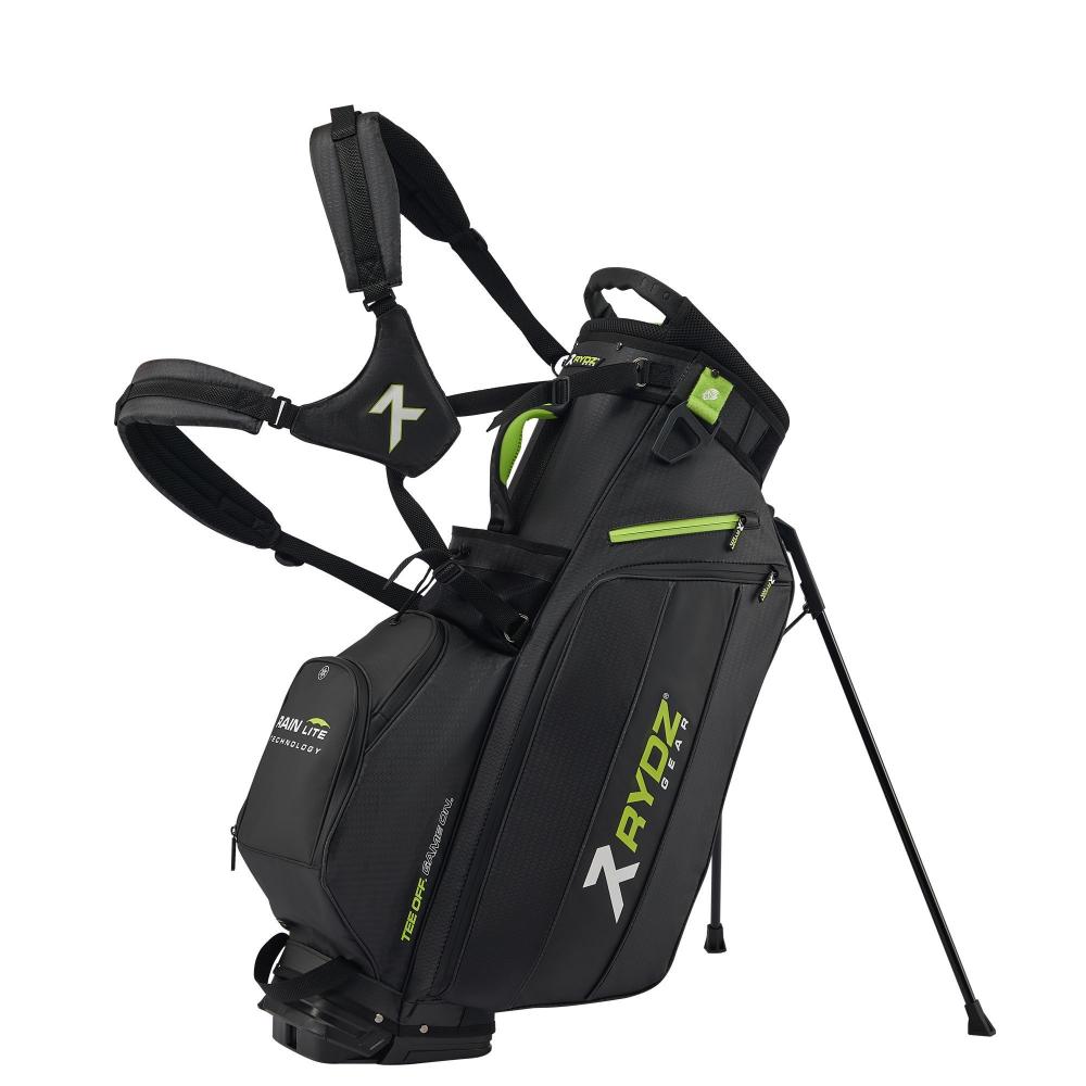 Das Rydz Gear Water Resistant 2 in 1 Hybrid Standbag Jetpack mit wasserabweisender Oberfläche und übersichtlicher Organisation im 14-Way-Mesh-Divider Top mit durchgehenden Unterteilungen zum Schutz der Schlägerschäfte und TPR-Einlage für besondere Schaftschonung.