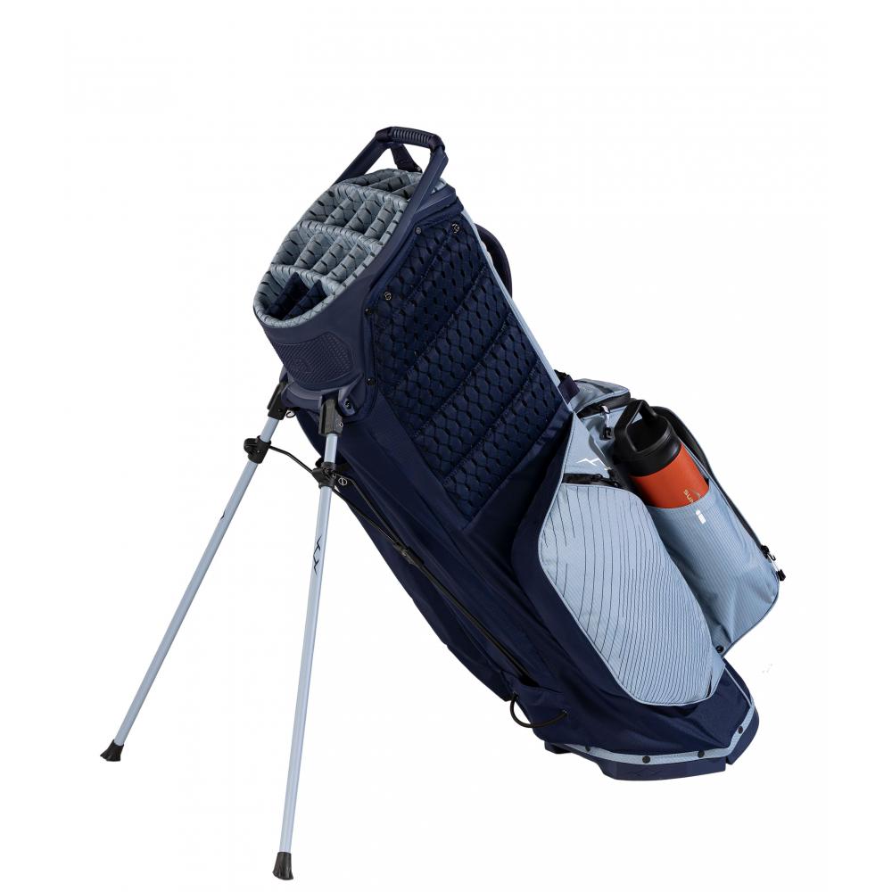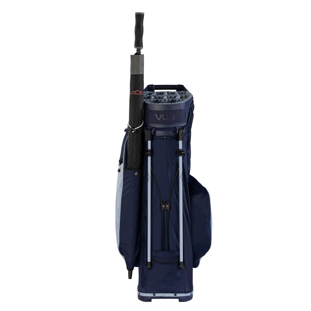 - 2-in-1: Die VLO-Technologie präsentiert die perfekte Weiterentwicklung einer Golfbag hin zu einem Hybridbag, d.h. Standbag und Cartbag in einer Tasche! Das Standsystem wurde dafür abgesenkt und neu ausbalanciert, sodass die obere Halterung des Golftrolleys die Tasche „greifen“ kann, ohne durch das Standsystem behindert zu werden