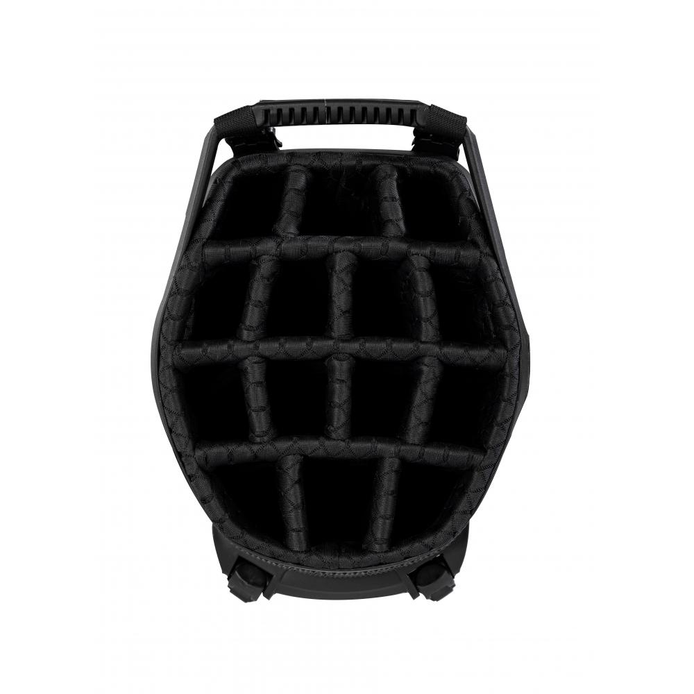 • 2-in-1: Die VLO-Technologie präsentiert die perfekte Weiterentwicklung einer Golfbag hin zu einem Hybridbag, d.h. Standbag und Cartbag in einer Tasche! Das Standsystem wurde dafür abgesenkt und neu ausbalanciert, sodass die obere Halterung des Golftrolleys die Tasche „greifen“ kann, ohne durch das Standsystem behindert zu werden